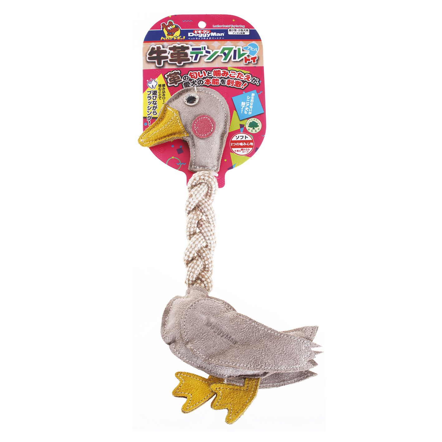 Provazy obsahují len, který účinně čistí zuby a pomáhá odstraňovat zubní plak a zubní kámen. Speciální úprava kůže má jasné přírodní aroma, které aktivně přitahuje zájem psa o hračku. Doporučeno japonskými veterináři.
