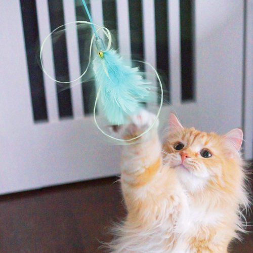 Upoutávka současně pokrývá čich, zrakové a sluchové receptory. • Přírodní peří stimuluje lovecký instinkt, takže kočka vypadá, jako by chytala skutečného ptáka. • Barevné peří ovlivňuje zrakový reflex kočky. • Zvonění rolničky a stuhy probudí i toho nejlínějšího mazlíčka. • Elastická škvírka napodobuje tanec baletky při houpání a v kočce probouzí zájem o hračku. Délka celého teaseru se stuhami je 67 cm.