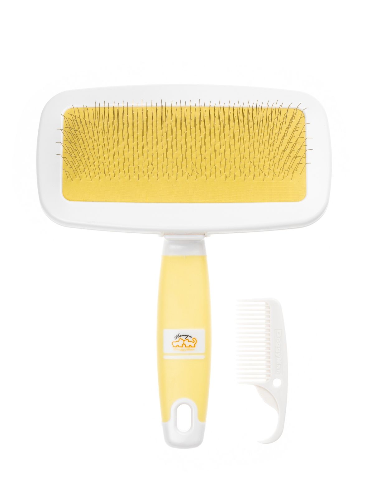 Slicker Bürste mit Kunststoffspitzen zur Fellpflege von Katzen und Hunden im Set mit Kamm. M-Größe
