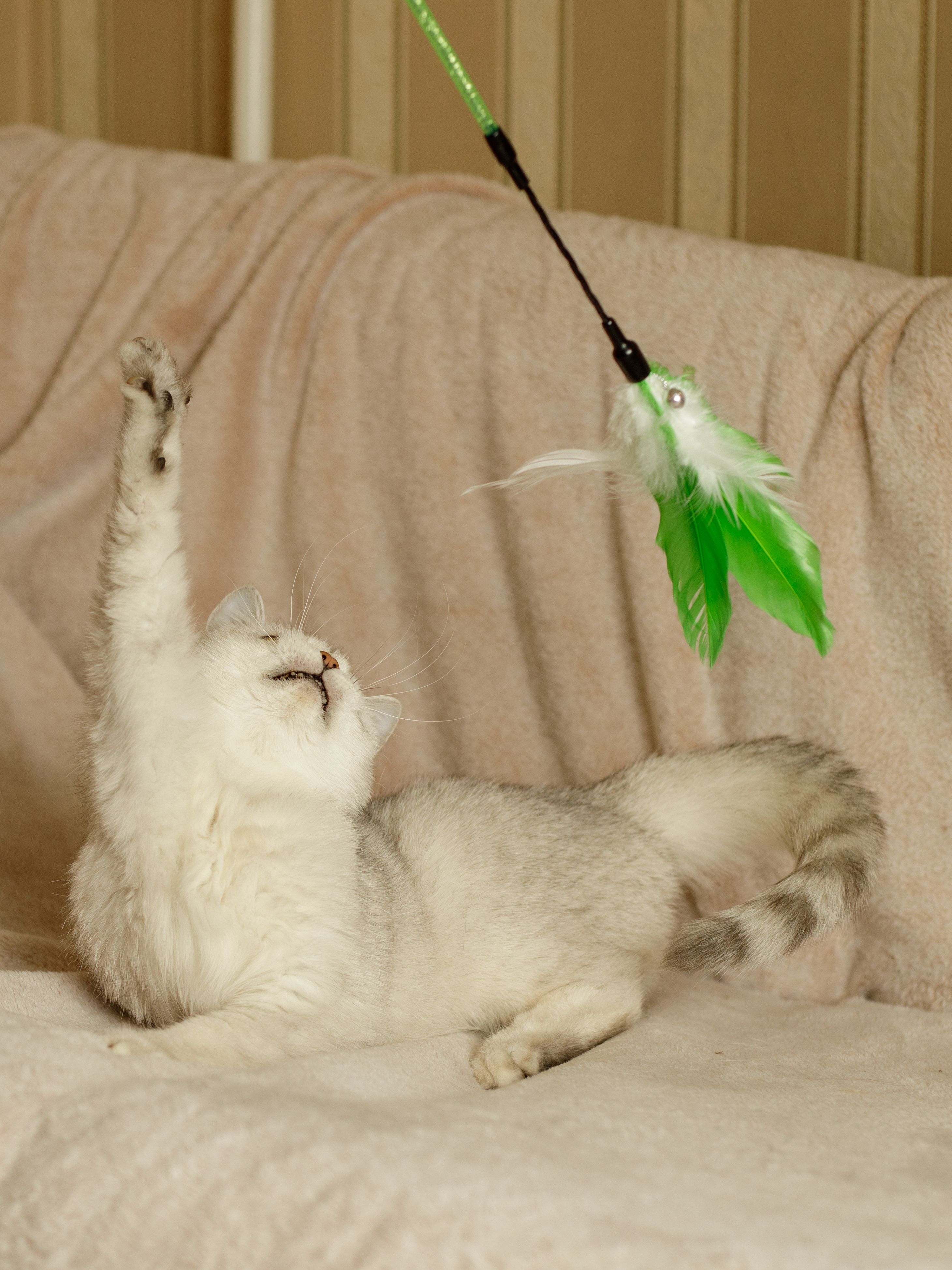 • Natural swan down and ostrich feathers are absolutely safe • Ringing bell attracts attention and activates the hunter's instinct • The handle is made from a new generation of super durable resin, making it durable pet toy • The handle is made with gloss enhancement technology, which makes the teaser bright and conviviality *Teasers are recommended to be displayed in a box without separating them.