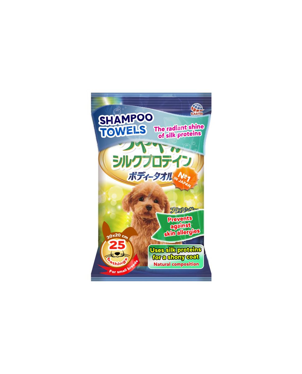 Shampoo Towel express bathing without water with the function of preventing skin allergies and dry dermatitis with silk protein and honey extract, for middle and small dogs, 25pcs.