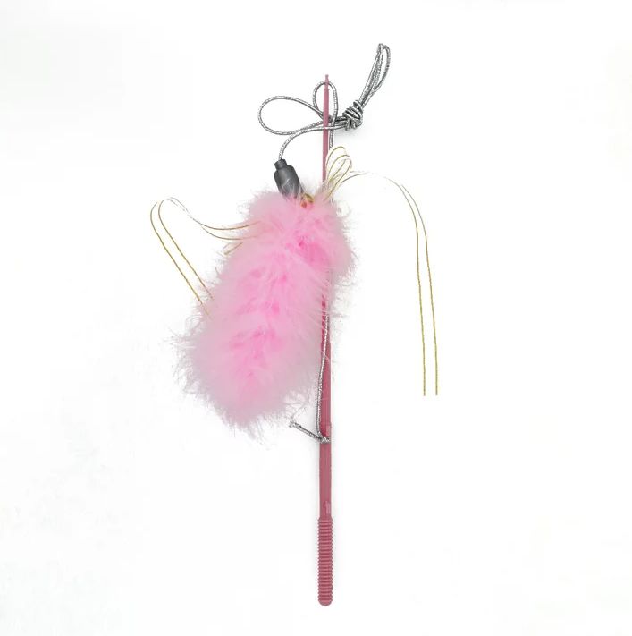 The teaser simultaneously covers the sense of smell, visual and auditory receptors. • Natural feathers stimulate the hunting instinct, making the cat look like she is catching a real bird. • Colored feathers affect the cat's visual reflex. • Ringing bell and ribbons will wake up even the laziest pet. • Elastic drawstring stretches as you wiggle, mimicking a ballerina's dance and warming up your cat's interest in the toy. Teaser stretches up to 250cm