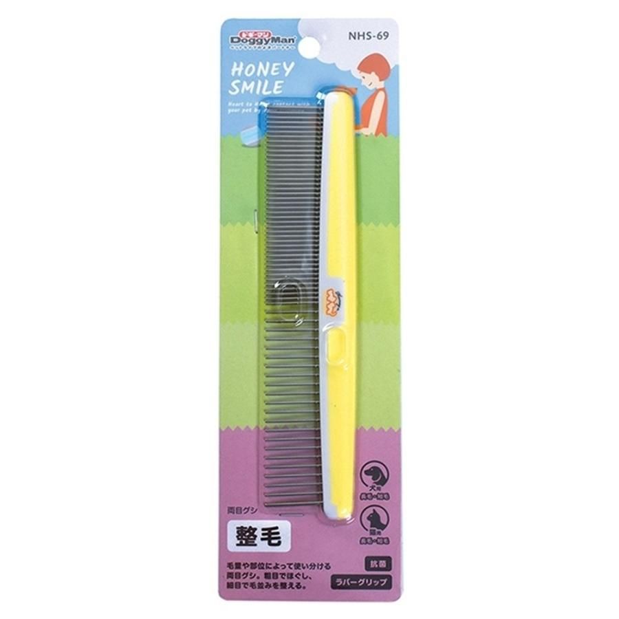 This double ended comb is a great tool for helping to remove tangles and shedded hair from your pet's coat. With teeth that are spaced closely apart at one end, you can easily comb out shedded hair form the coat. The other end of the comb has teeth that are spaced further apart, which is better for helpibg to untangle matted hair in the coat. The comb can be used on pet's of all sizes, and on the fur of your pet's coat of any length. It is also helpful when you are trimming the coat, and helps to get rid of the fur that falls back into the coat. Its a wonderful tool to access those hard to reach places on your pet's body. The tips of the teeth have a special rounded shape which have a gentle effect to the skin and do not cause any unnecessary irritation and reduce possibe pain. There is a sterile and anti-slip coating on the comb's handle