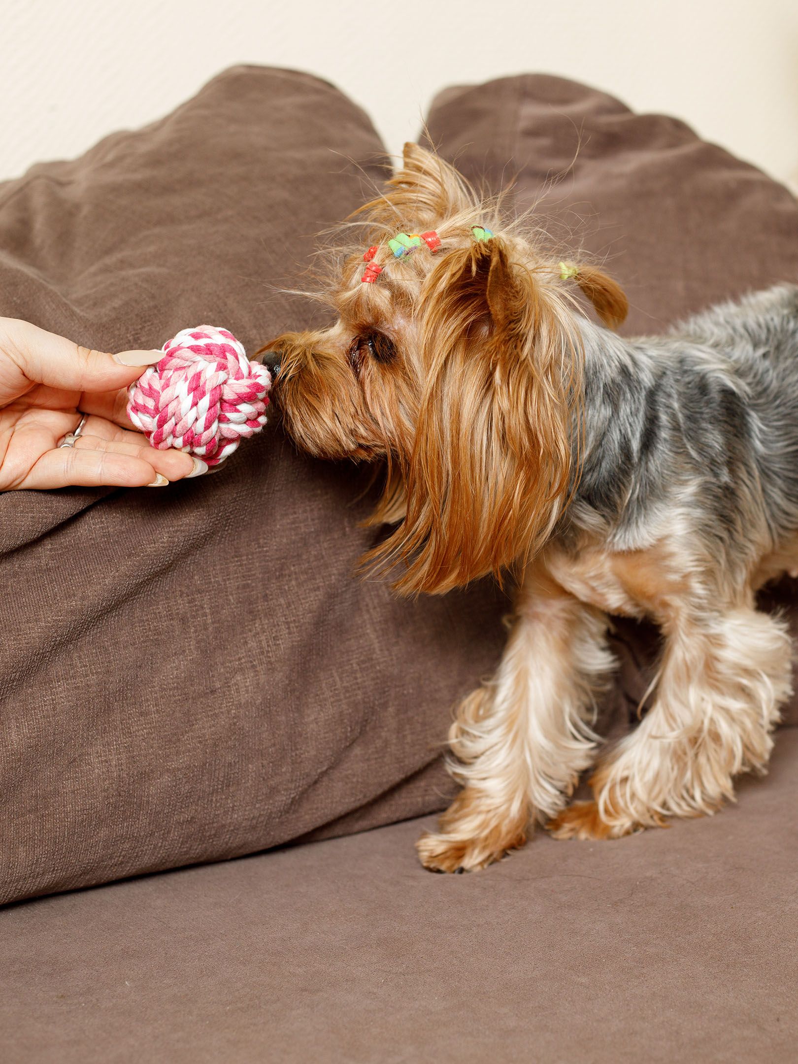 Bola trenzada juguete para perros para la limpieza dental con aroma intrigante, sabor fresa, Tamaño SS. Trenzado doble recubierto por sogas. El tejido especial del juguete ayuda a limpiar, mantener la higiene bucal y fortalecer los dientes. El delicioso aroma dulce de la fresa lechosa que emana de la pelota alimenta el interés de la mascota en el juego. Material: 100% algodón, saborizante. Tamaño 55x55 mm. Tamaño 55x55 mm.