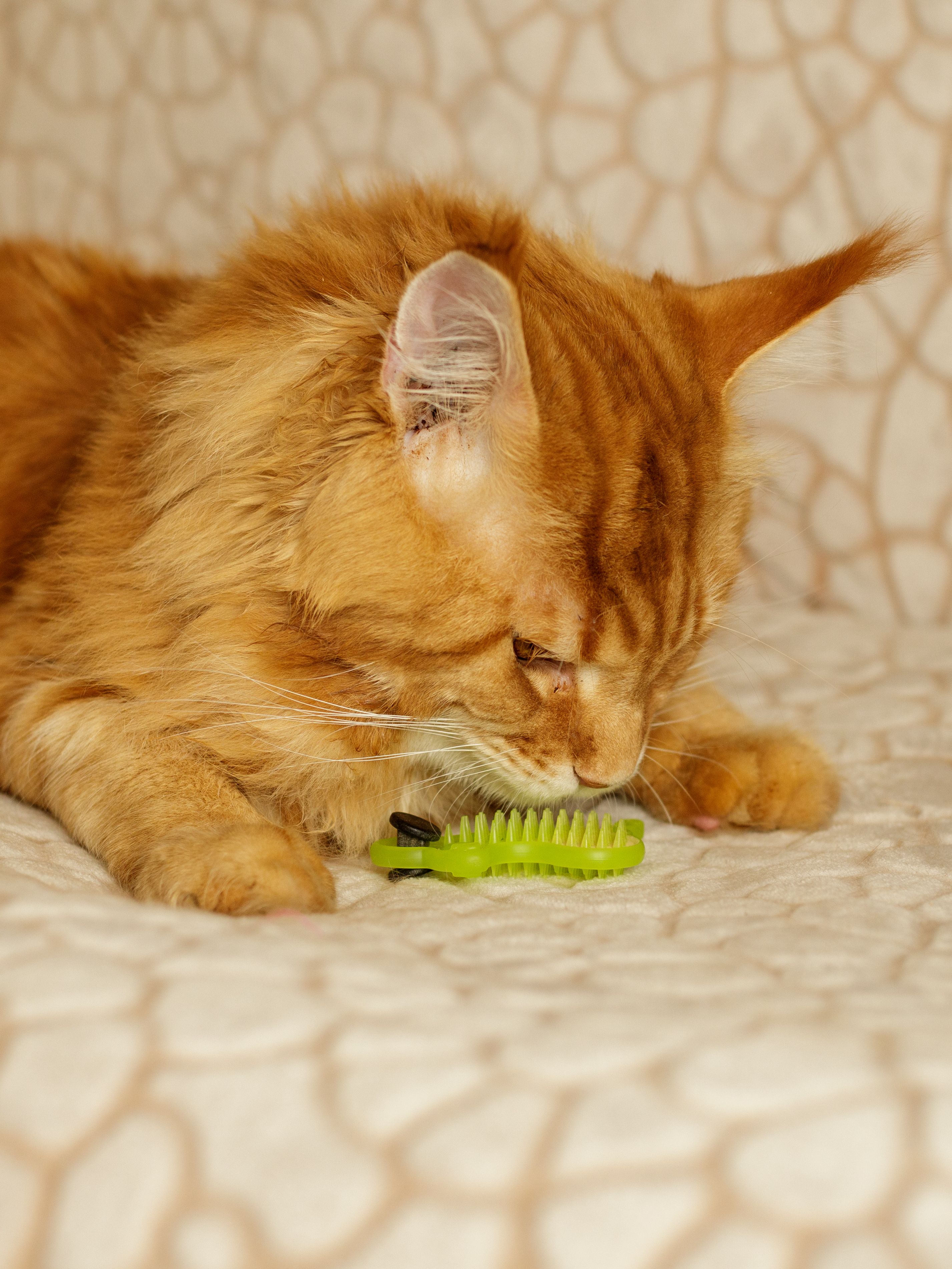Le jouet a été développé en collaboration avec des vétérinaires pour favoriser la santé des dents et des gencives. Les pointes souples et élastiques éliminent en douceur la plaque. La forme volumétrique ergonomique aide à saisir facilement le jouet et à le tenir dans les pattes pendant la mastication. Le jouet est imprégné de matatabi, qui ravit les chats et chats de tous âges. Largeur 49 mm Longueur 75mm