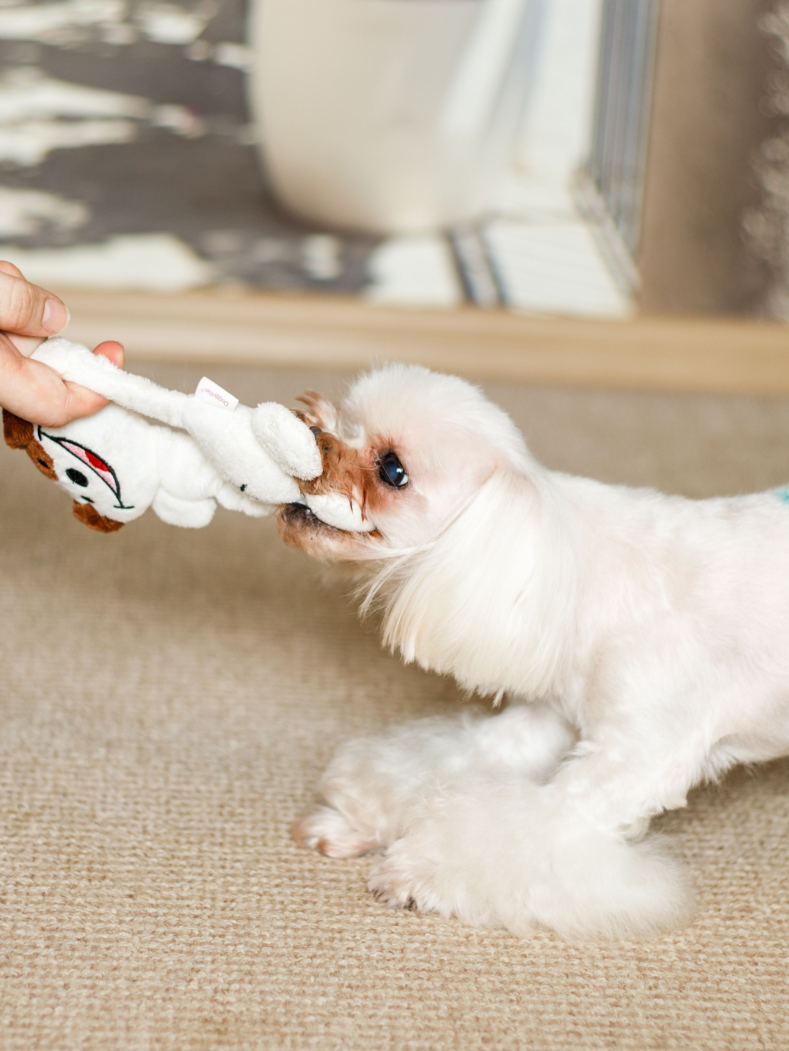 Le chien "jouet extensible" est conçu pour les jeux d'animaux actifs avec le propriétaire ou deux chiens l'un avec l'autre. D'une part, un couineur est intégré, d'autre part, un mécanisme de bruissement qui ravit les chiens. Grâce à l'élément élastique, le jouet s'étire et retrouve rapidement sa forme, maintenant l'intérêt de l'animal pour une compétition impromptue.