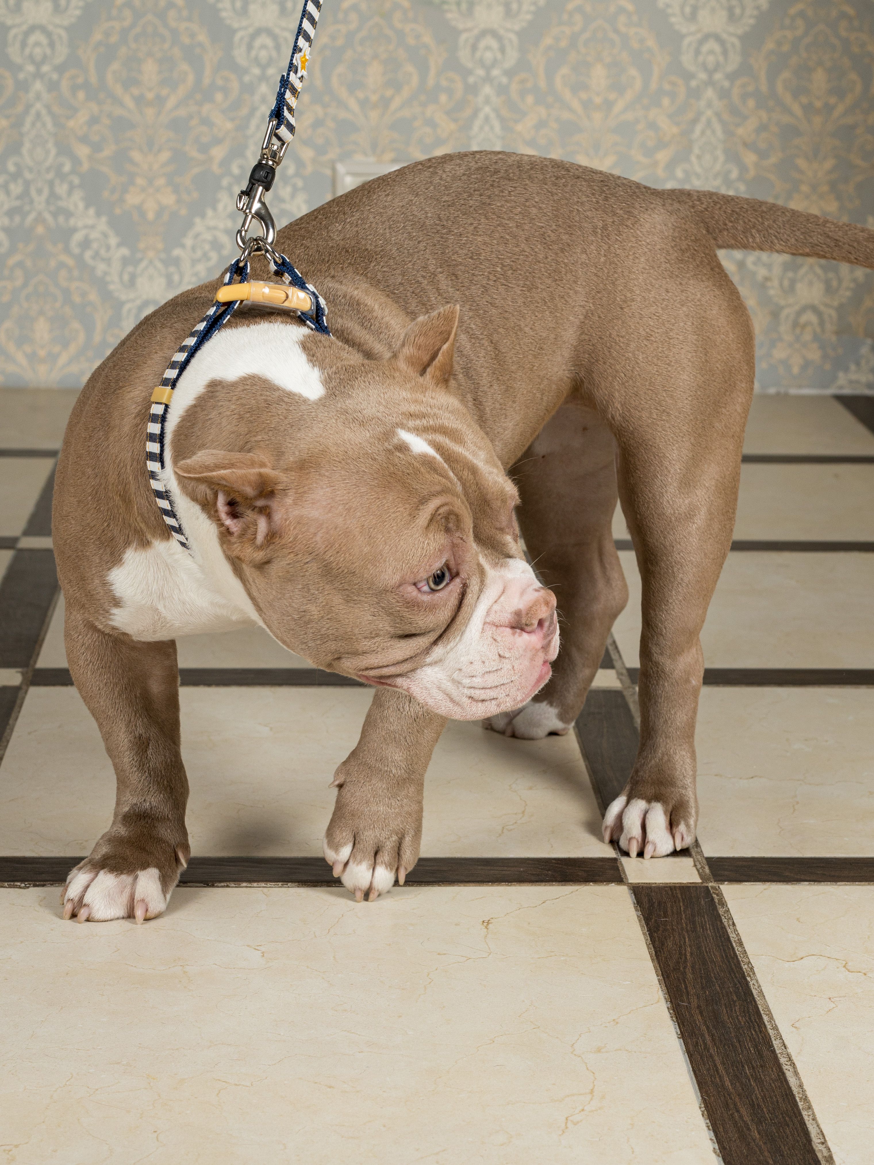 Collare in jeans "English Style" con protezione in silicone e doppio attacco, taglia M. Colore Navy e blu