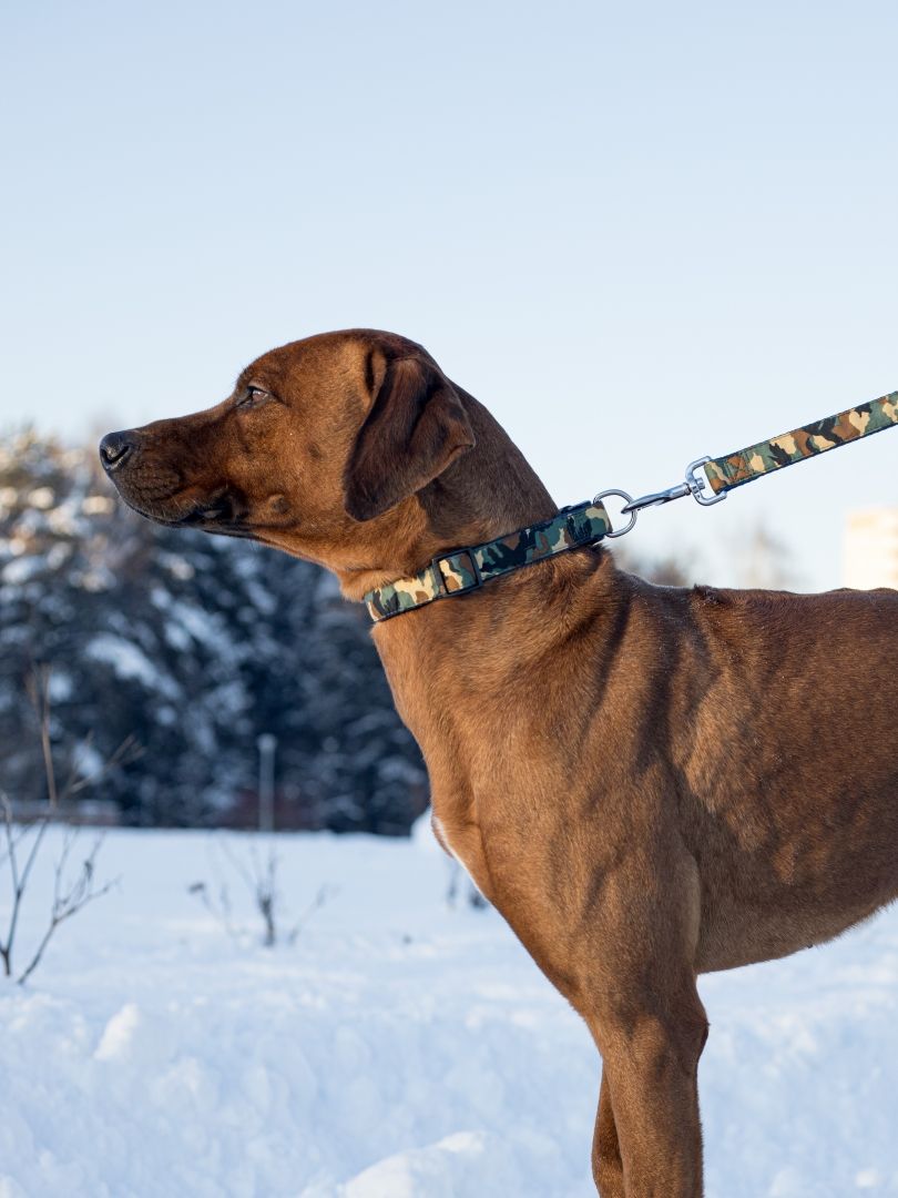 Collare e guinzaglio ibrido per cani "Military Camouflage", taglia M, militare