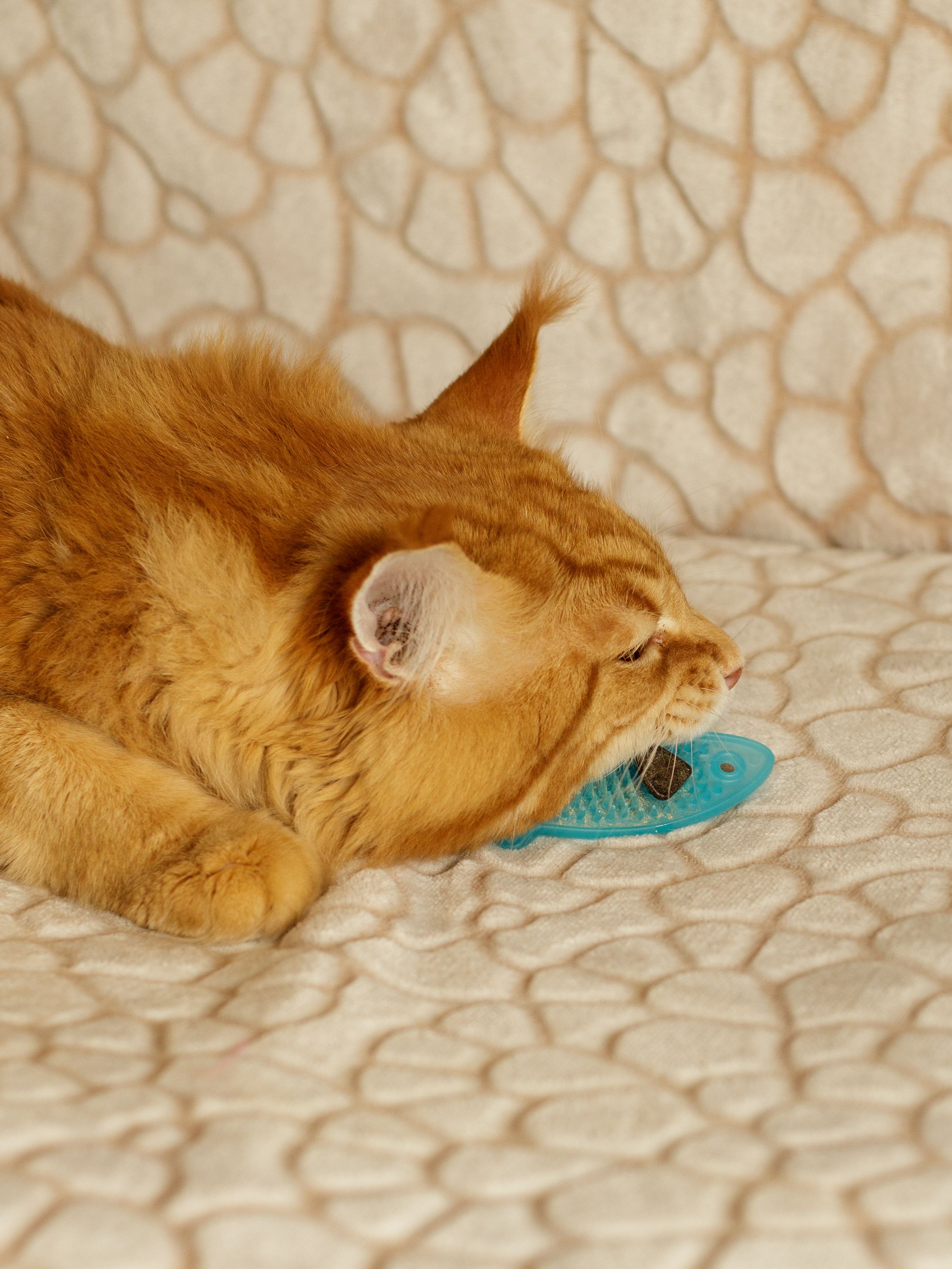 Zabawka została zaprojektowana wspólnie z weterynarzami w celu utrzymania zdrowych zębów i dziąseł. Miękkie i elastyczne kolce delikatnie usuwają płytkę nazębną. Ergonomiczny objętościowy kształt ułatwia podnoszenie zabawki i trzymanie jej w łapkach podczas żucia. Zabawka oblana jest matatabi, zachwycając koty i kotki w każdym wieku. Szerokość 33mm Długość 90mm