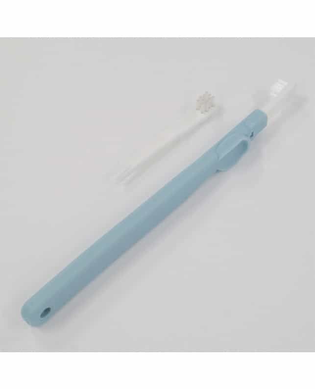 Wyjątkowa szczoteczka do zębów z technologią opatentowaną w Japonii, zaprojektowana z uwzględnieniem anatomicznej budowy psiego pyska. Ta skuteczna szczoteczka została wykonana z korpusem flexibe, który umożliwia czyszczenie nawet najmniejszych psich pysków. Ta cecha oznacza również, że szczoteczka zgina się do kształtu palców, więc w istocie jest jak czyszczenie zębów palcem, co daje doskonałą kontrolę. Materiał, który został wybrany na włosie jest bardzo delikatny dla zębów, nie rysuje szkliwa ani nie uszkadza dziąseł. Jest to szczególnie ważne, ponieważ szkliwo na zębach psów jest znacznie cieńsze niż u ludzi. Bardzo długa główka dociera do zębów z tyłu szczęki z łatwością, więc nie musisz się martwić o jakikolwiek dyskomfort lub strach dla twojego zwierzaka, kiedy używasz tej szczotki. Jest to naprawdę świetna szczotka do promowania wysokiego poziomu pielęgnacji jamy ustnej wraz z doskonałą rutyną higieny zębów. W zestawie znajduje się wymienna szczotka, którą można łatwo zamocować po usunięciu starej. Długość korpusu 15,5 cm, długość główki 1 cm, szerokość główki 0,5 cm.